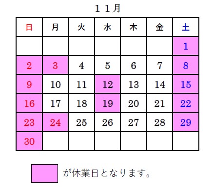 11月の営業日を下記の通りとさせていただきます。