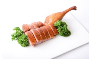 アヒル1羽丸ごとを特製タレで漬け込んだ後、じっくりとスモーク(燻製)し、風味を加えた商品です。スモーク(燻製)することで、肉の旨味が引き立ち、煙の香りが肉に染み込むため、独特の風味が楽しめます。
