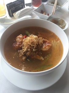 フカヒレ姿と三種お宝入り壺蒸し仕立て 大海老と穴子の甘辛炒めスパイスの香り