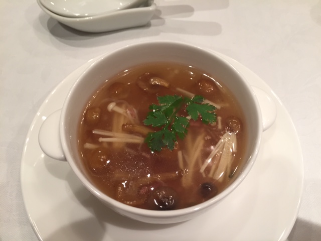 帆立貝のサラダ アグリュムソース初夏の装い 豆乳クリームの蒸しスープ 毛鹿鮫のふかひれ煮込み