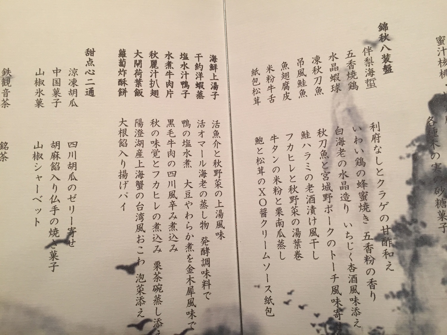 ヨシキリザメヒレと白菜のクリーム煮 あわびとなまこの辛子山椒煮